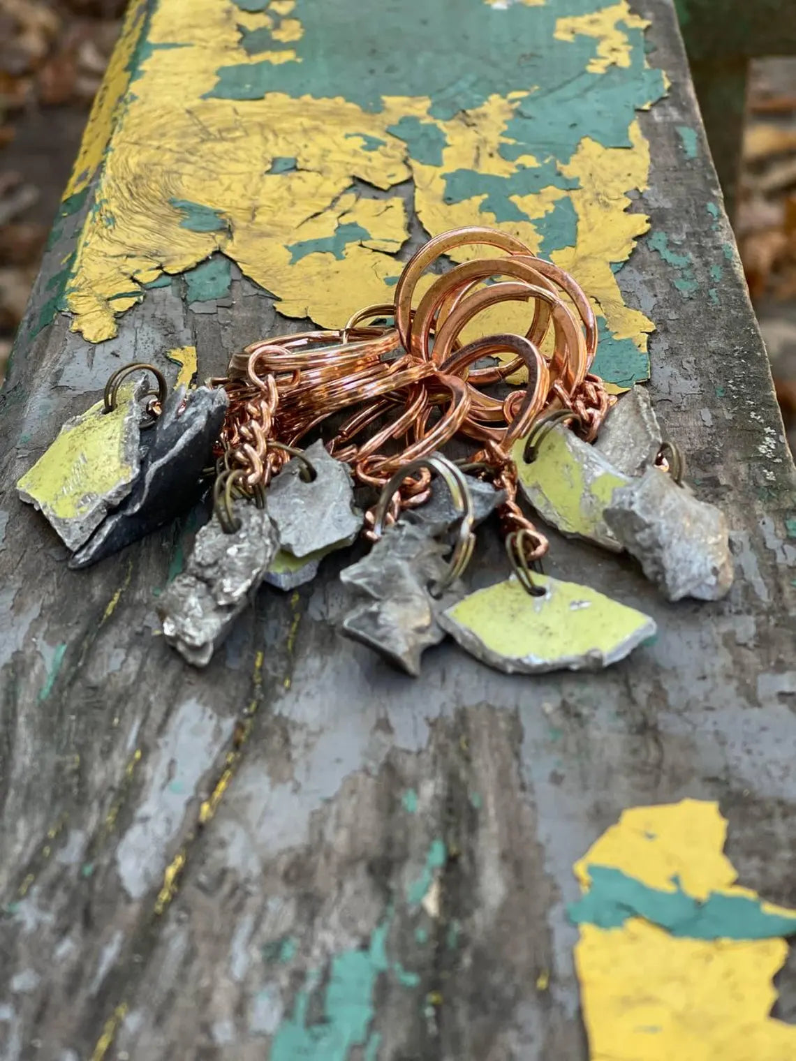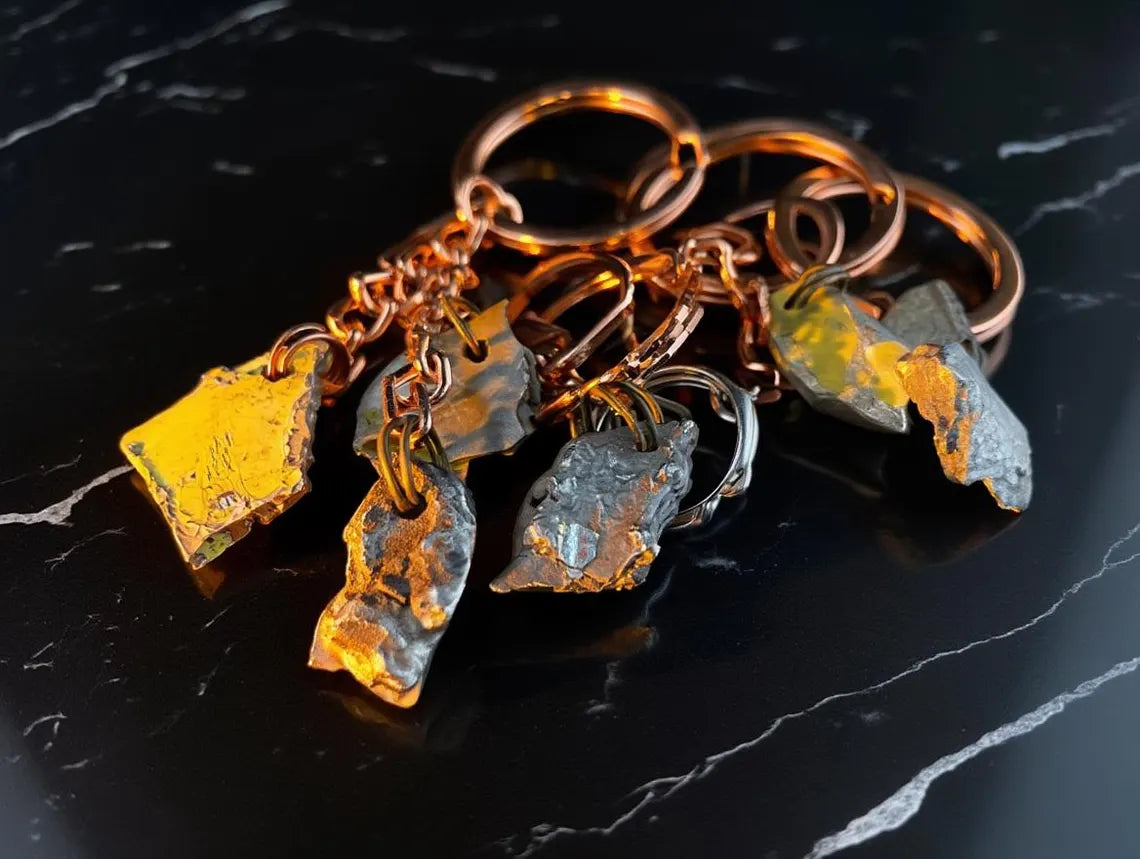 This handmade keychain is crafted from real fragments of a downed missile intercepted over Kyiv. Each shard carries the raw texture of history – transformed into a symbol of survival, strength, and victory.