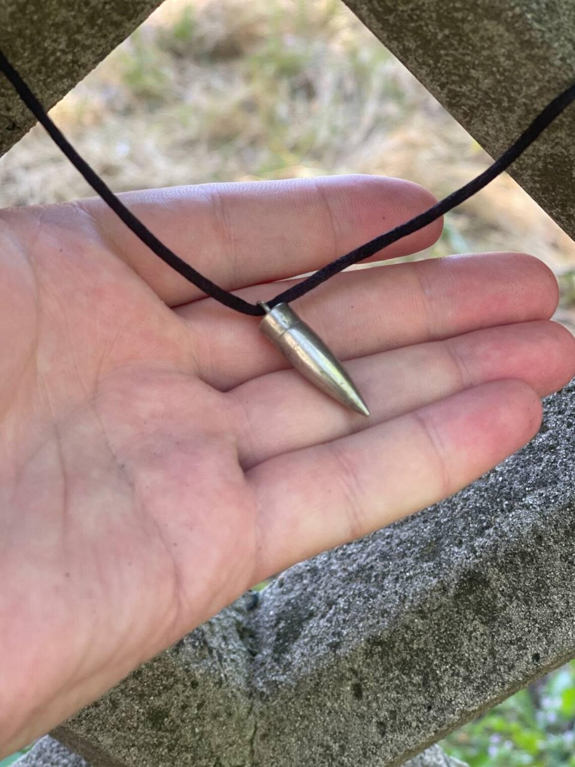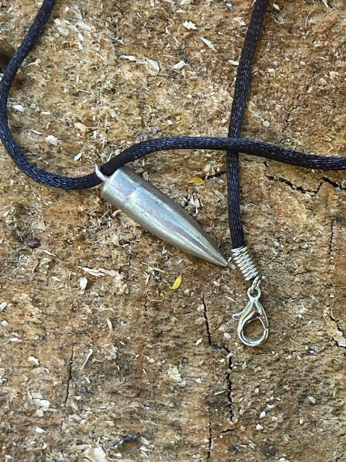 Pendant material Up-cycled steel bullet projectile — fully inert & lead-free